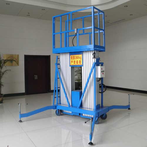 鋁合金升降機系列產品為多為室內型,廣泛適用于星級酒店,大型超市等各行業(yè)大廳、廠房內的高空作業(yè),具有升降平衡,操作方便,能進入一般門廳,可隨意進出電梯且耗電少、無污染、工作時不傷地面,可用于貼墻工作及探出作業(yè),工作無死角。鋁合金式液壓升降平臺產品采用鋁合金材料,動力經過液壓泵站帶動鏈條傳動,結構合理設計緊湊。鋁合金升降作業(yè)平臺根據(jù)升高高度分為單柱、雙住、三柱和四柱式,具有造型美觀、體積小、重量輕、升降平穩(wěn)等優(yōu)點,并能夠上下操作,升降平臺廣泛用于酒店賓館、車站候車室、機場候機樓、影劇院、展覽館、體育館等場所,是保養(yǎng)機具、油漆裝修、調換燈具、電器、清潔保養(yǎng)等用途的伴侶。