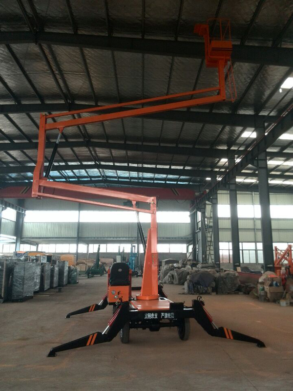 自行曲(折)臂式升降機升高時候是曲折狀態的,升降平臺的結構采用了機電液一體化、可靠性設計和計算機輔助設計等技術,是一種全液壓驅動、自行式專用底盤。突破了以往國內高空作業升降機只能采用汽車或起重機底盤改裝設計的限制。自行曲(折0臂升降機,曲臂式往往體積較小,帶載行駛、作業穩定性好。底盤結構突破了傳統的設計理論和方法,通過優化上車平臺總體布局與載荷分布,減少了重心偏移。采用獨特的大角度后仰式鉸點結構,合理設置多種配重模塊,有效地平衡了工作力矩。采用H型變截面復合箱梁剮性車架和高負荷橡膠輪胎,增加了底盤整體剛度,保證了整機行駛、作業過程的穩定性實現了高空作業升降機帶載行駛的功能。通過大臂前端托架可以快速安裝舉升裝置或載人平臺,實現物料舉升、起重吊裝和載人高空作業等功能同時為擴展作業裝置以及各種工作裝置的快速切換提供了接口。設計的三維旋轉托舉裝置,既能夠自動保持被舉升物料的姿態,又可以實現舉升物料在空間內任意高度、任意位置和任意方向的調整要求,速度控制精確靈敏,微動性能好,滿足了大型洞庫內高空作業與通風管道安裝的要求。