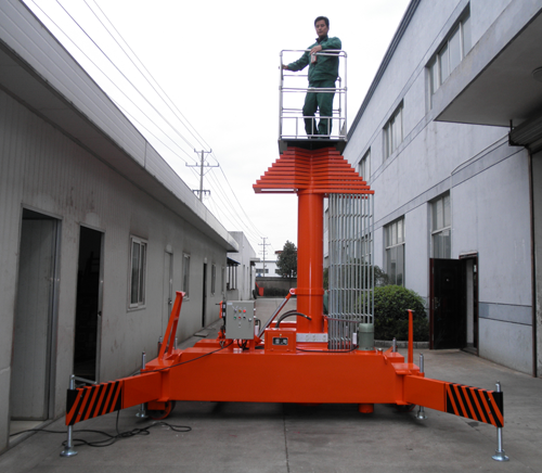 套缸式升降平臺為多級液壓缸直立上升,液壓缸高強(qiáng)度的材質(zhì)和良好的機(jī)械性能,塔形梯狀護(hù)架,使升降平臺有更高的穩(wěn)定性。即使身處50米高空,也能感受其優(yōu)越的平穩(wěn)性能。主要用于電力線路、照明電器、高架管道等安裝維護(hù),高空清潔等單人工作的高空作業(yè)。主要產(chǎn)品分為:單梯防旋轉(zhuǎn)、雙梯防旋轉(zhuǎn)、可傾斜式液壓升降平臺。