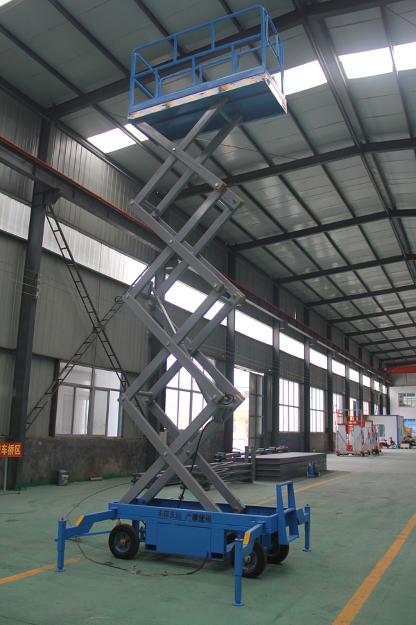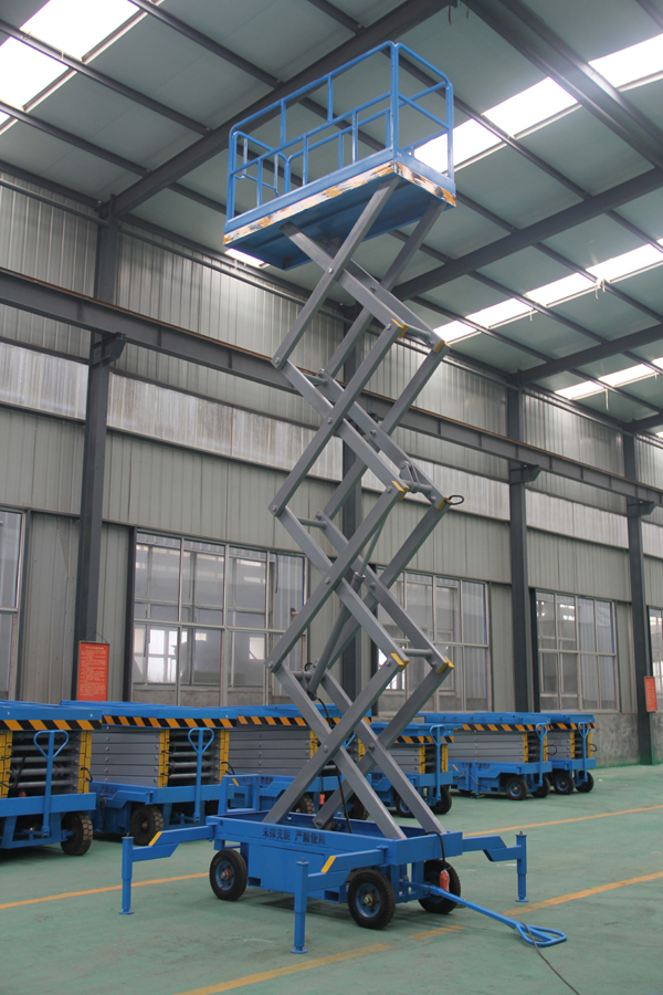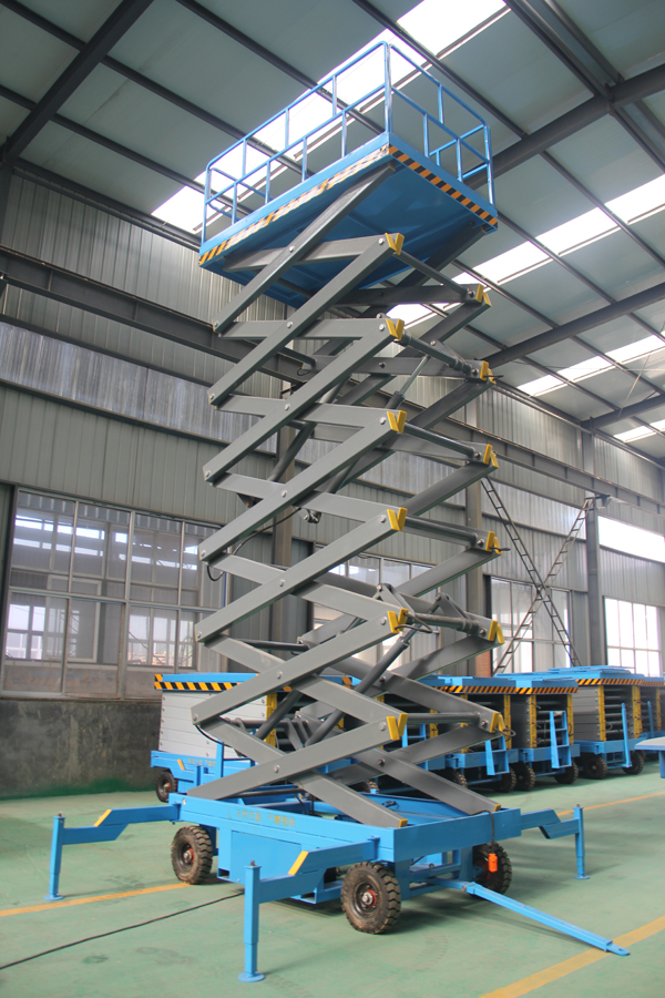移動剪叉式升降平臺主要技術特點:臺面鋼板折彎、底架及剪叉結構山鋼定做高強度矩形管材; 標準冷彎槽做道軌,使用尼龍滑塊做導軌輪,接觸面大,升降平穩,晃動小;液壓油缸 內置防爆閥(防止油管斷裂,平臺失速下降),采用進口密封圈,經久耐用,不泄露;雙層鋼網高壓油管;升降機專用液壓泵站,加裝應急下降閥,平臺斷電可手動控制 下降,內置溢流閥,可防止上行運動時系統壓力過高,起到超載保護功能;充氣橡膠輪胎;電路電器、接觸器羅列連接,加裝熱過載保護,缺相保護等安全保護功能;電動上、下電動控制,控制按鈕盒加裝急停按鈕,以最大限度保障財產及人身安全,各操作部分使用24V安全控制電壓;軸銷圓鋼配做,調質處理;拋丸、噴砂 除銹處理,除去鋼結構構件表面的銹蝕及焊接飛濺,能使鋼構件表面產生一定程度的凹凸不平的效果,增大粉末的附著力;使用靜電粉末噴涂;涂層外觀質量優異,附著力及機械強度強,色澤亮度高,經久不褪色。