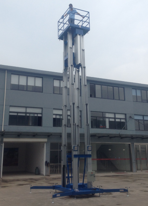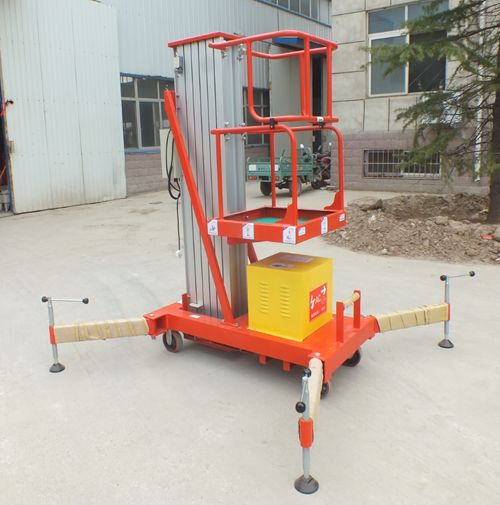 鋁合金升降機升高高度在8米以下為單跪柱式,在10米到14米之間為雙跪柱式,15米到18米之間則升為三跪柱式或四跪柱式。通過升降平臺跪柱的增加達到設(shè)備在高空的穩(wěn)定性,保證作業(yè)安全,減小設(shè)備晃動的幅度,使高空作業(yè)更加平穩(wěn)。該升降平臺配備了中德合資的液壓泵站,該泵站為壓鑄鋁集成閥塊,結(jié)構(gòu)緊湊,系統(tǒng)壓力16MPa,選用進口密封件的精磨高壓液壓油缸作為主要升降動力,經(jīng)過液壓泵站帶動鏈條傳動,結(jié)構(gòu)合理,設(shè)計緊湊。鋁合金式液壓升降平臺下降速度可自調(diào),而且設(shè)備設(shè)有手動下降裝置,保證在停電時的正常工作;設(shè)有應(yīng)急停運按鈕;臺面設(shè)有防滑絕緣扣板,更換方便,易于清潔,維修方便,有效保障工作安全可靠,保證使用人員的絕對安全。外形美觀,整體輕盈,能在極小的空間內(nèi)發(fā)揮最高的舉升功能,也可根據(jù)客戶要求加裝蓄電池以滿足客戶工作場地的不同要求。