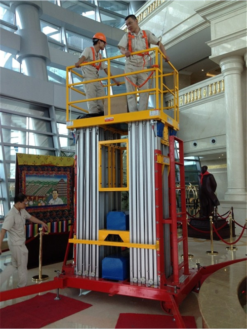 鋁合金升降機系列產(chǎn)品為多為室內(nèi)型,廣泛適用于星級酒店,大型超市等各行業(yè)大廳、廠房內(nèi)的高空作業(yè),具有升降平衡,操作方便,能進入一般門廳,可隨意進出電梯且耗電少、無污染、工作時不傷地面,可用于貼墻工作及探出作業(yè),工作無死角。鋁合金式液壓升降平臺產(chǎn)品采用高強度優(yōu)質(zhì)鋁合金材料,動力經(jīng)過液壓泵站帶動鏈條傳動,結(jié)構(gòu)合理設(shè)計緊湊。鋁合金升降作業(yè)平臺根據(jù)升高高度分為單柱、雙住、三柱和四柱式,具有造型美觀、體積小、重量輕、升降平穩(wěn)等優(yōu)點,并能夠上下操作,升降平臺廣泛用于酒店賓館、車站候車室、機場候機樓、影劇院、展覽館、體育館等場所,是保養(yǎng)機具、油漆裝修、調(diào)換燈具、電器、清潔保養(yǎng)等用途的最佳安全高空作業(yè)伴侶。